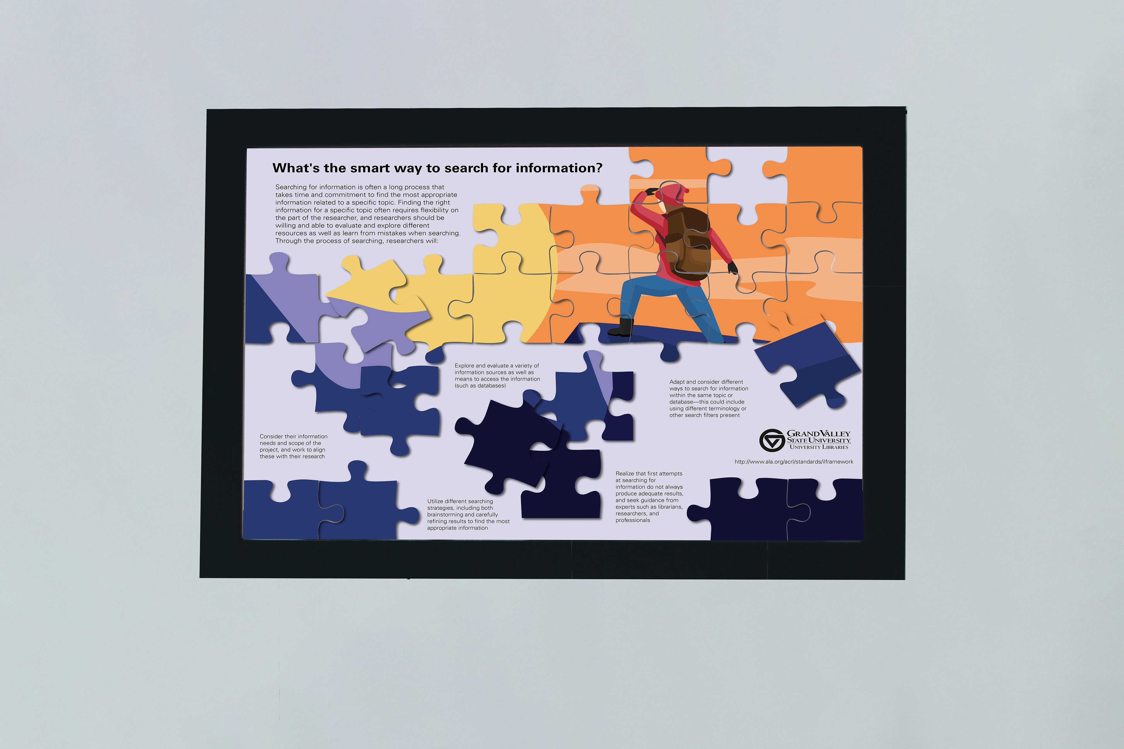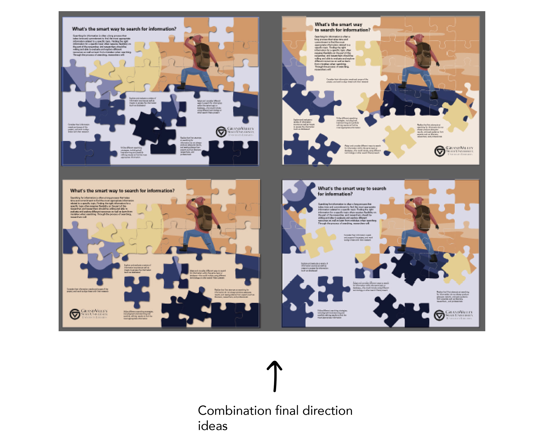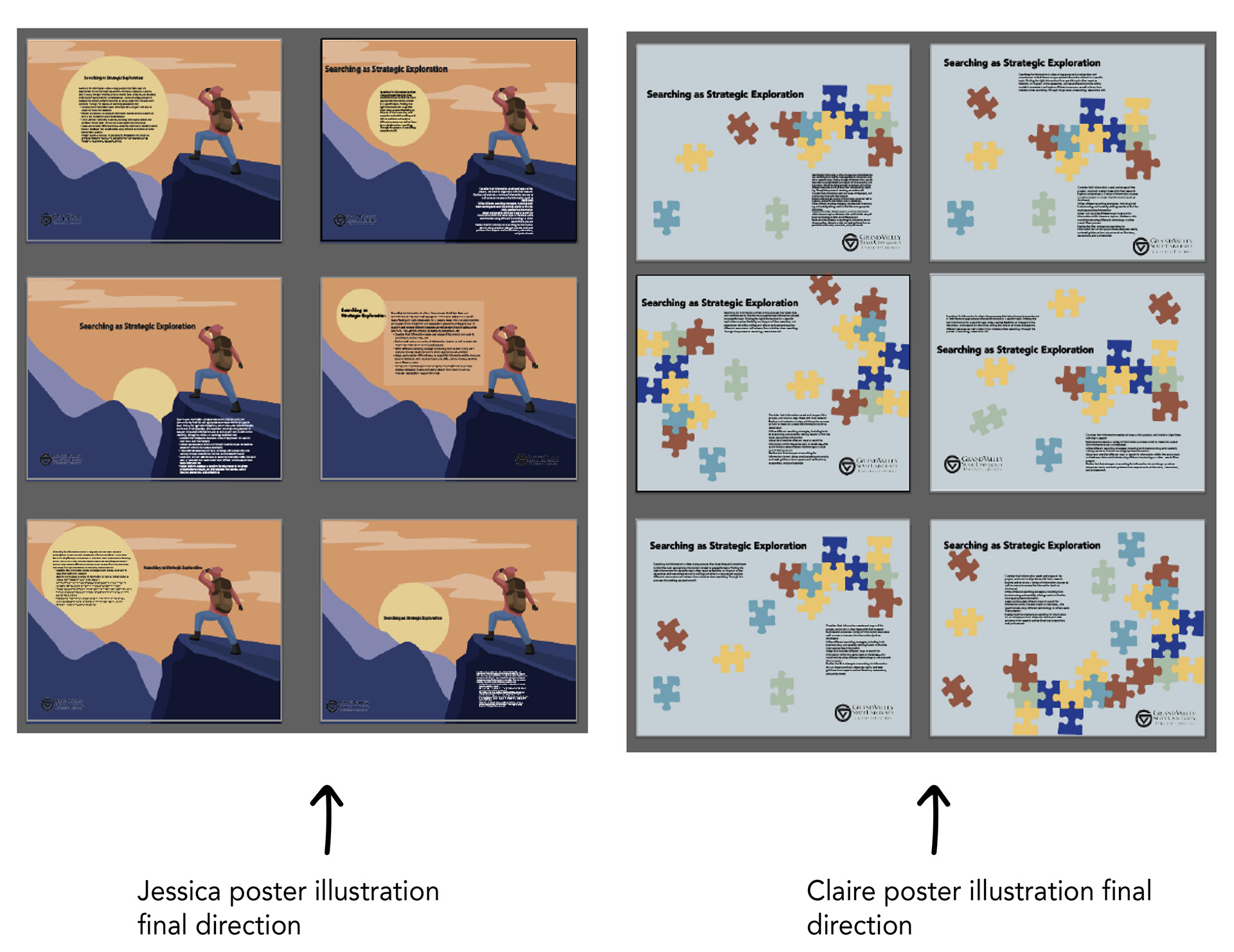 A collaboration project with Jessica Jerue another Grand Valley Design Student in my class. Our assignment was creating a poster for the Grand Valley State University Libraries. The theme was "Searching as Strategic Exploration."